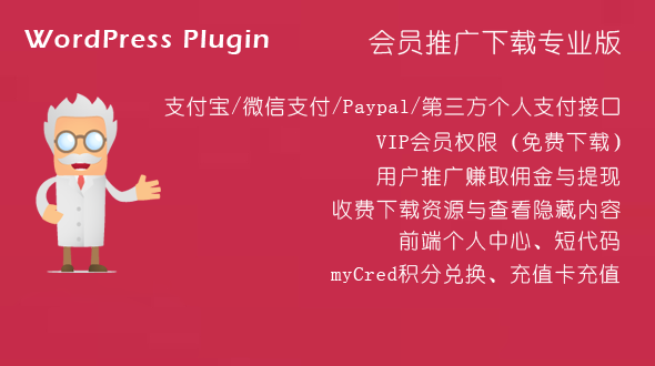 会员推广下载专业版 WordPress插件(erphpdown)是模板兔开发的一款针对虚拟资源收费下载/付费下载/付费视频/收费查看/付费阅读/付费查看/VIP下载查看的插件,经过完美测试运行于wordpress 3.x-最新版本。后续模板兔会增加更多实用的功能。 已针对此插件开发了一个前端用户中心,基本适用于任何主题(不排除有的主题使用错位的可能),此前端个人中心页面模板免费赠送。本插件无域名限制。